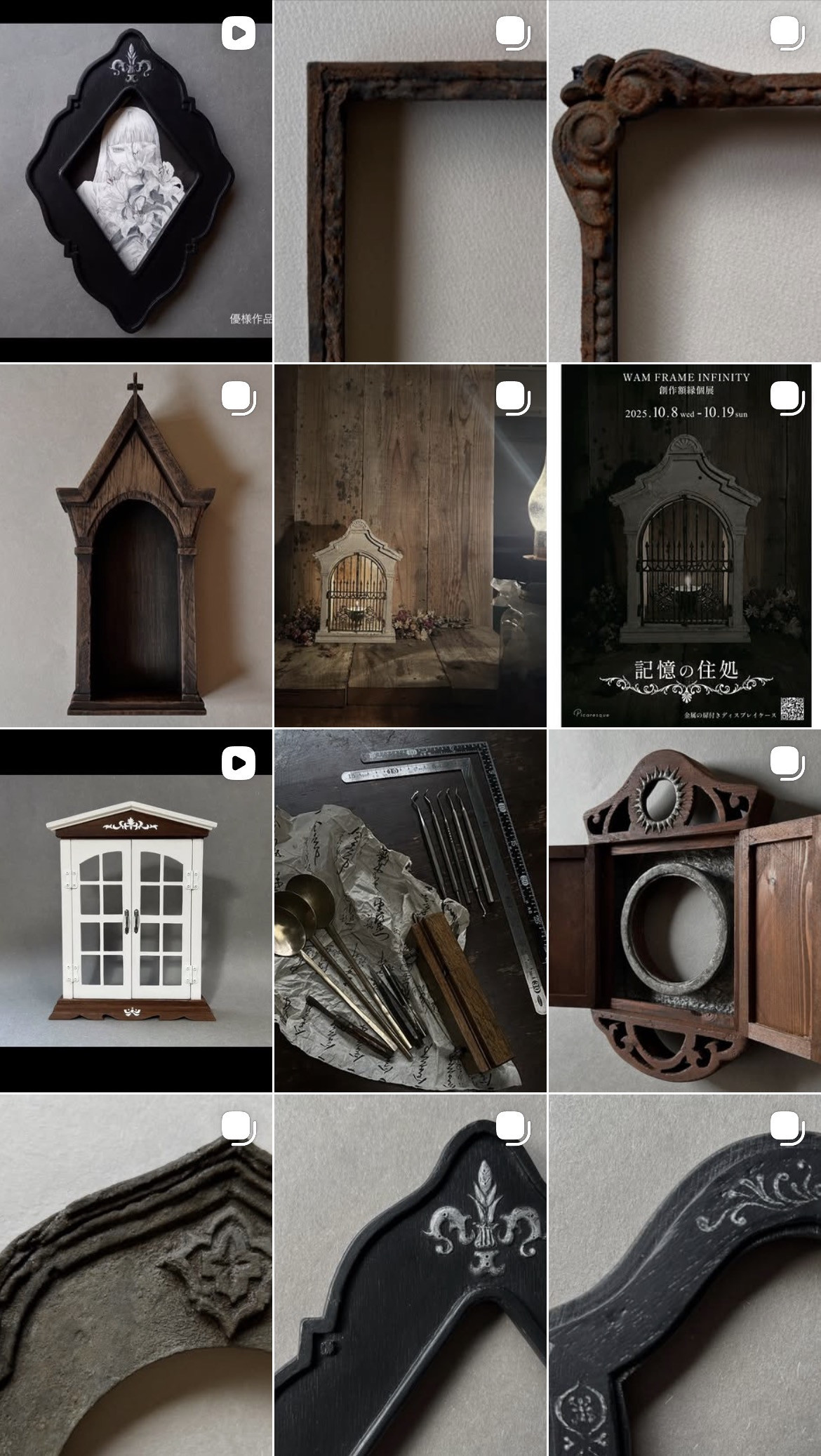 さまざまな素材で作った額縁を